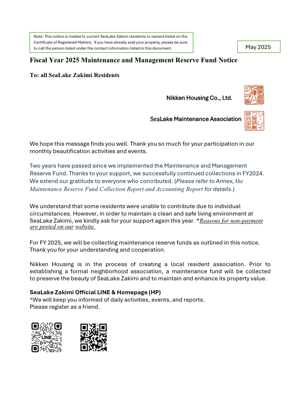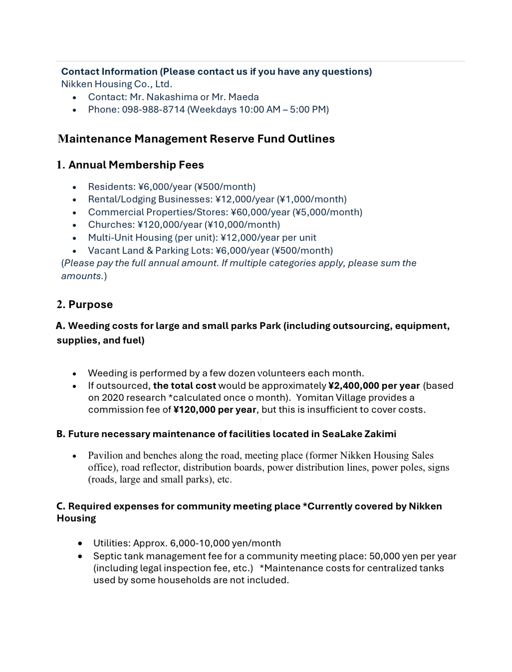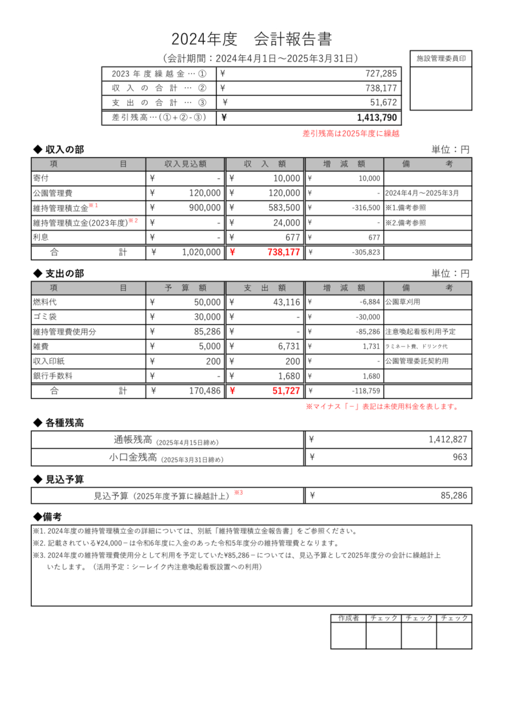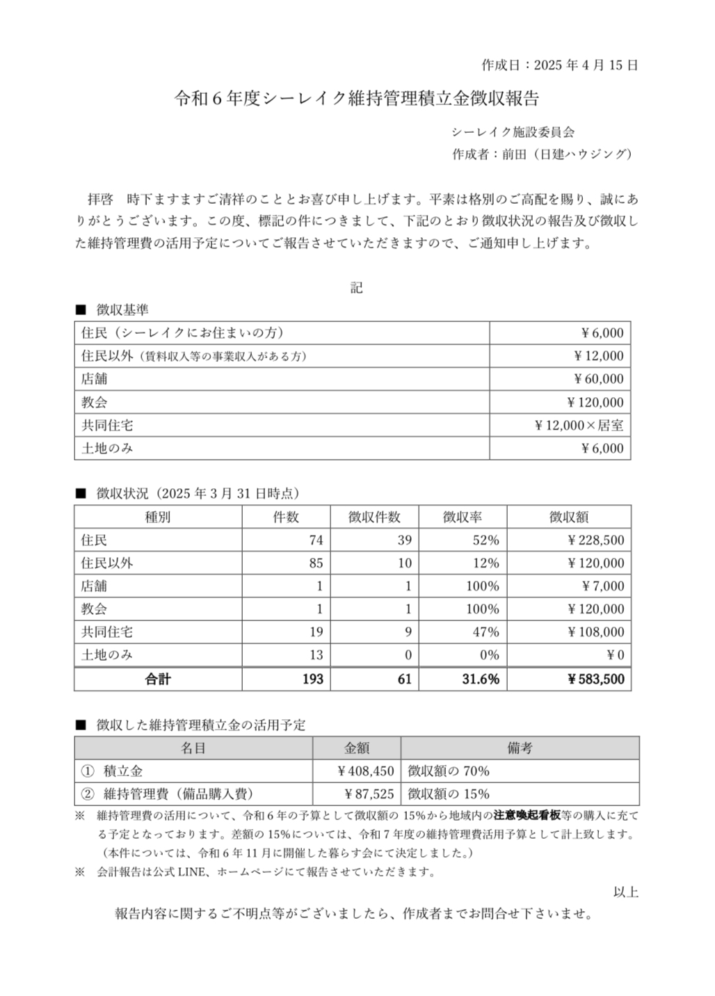 維持管理積立金報告:Maintenance reserve fund report